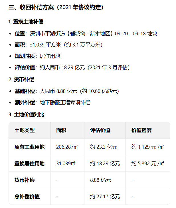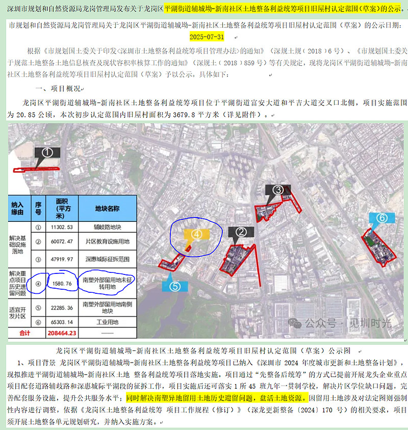 $恒生指数(HKHSI)$ $世界(集团)(00713)$ 深圳南塑工厂的赔偿的因置换土地拆迁没有完成,27亿的土地赔偿一直没有入账变成利润,2026 年 1 月 19 日:龙岗区发布平湖街道新桥一路及高圆路市政工程房屋征收提示,征收范围与辅城坳土地整备项目重叠,涉及一期二批实施范围的 2 栋未签约房屋,龙岗区城市更新和土地整备局发布房屋征收提示,正式启动对这 2 栋房屋的行政征收程序(拆迁办有高人,一举两得)。征收完成后,将全面打通片区路网,为世界(集团)(00713)置换土地开发创造交通条件,评估价值约18.29 亿元人民币[辅城坳 - 新木地区] 09-18、09-20 地块终于可以入账变成利润了![]()