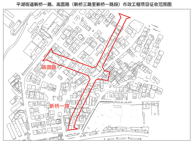 附件:平湖街道新桥一路、高圆路(新桥三路至新桥一路段)市政工程项目征收范围图