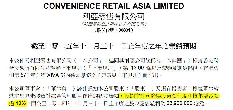 $恒生指数(HKHSI)$ $利亚零售(00831)$ 2024年关闭亏损的广州门店,2025年盈利开始恢复增长,利亚零售最坏的时间已经过去,冯家人在香港被人尊为最会赚小钱的家族,果然厉害