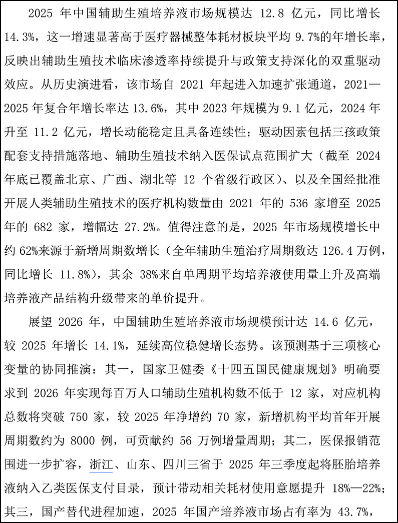 $恒生指数(HKHSI)$:$贝康医疗-B(02170)$ 2025 年中国数值培养液市场 12.8 亿元,同比增长 14.3%,显著高于医疗器械耗材板块 9.7% 的平均增速。