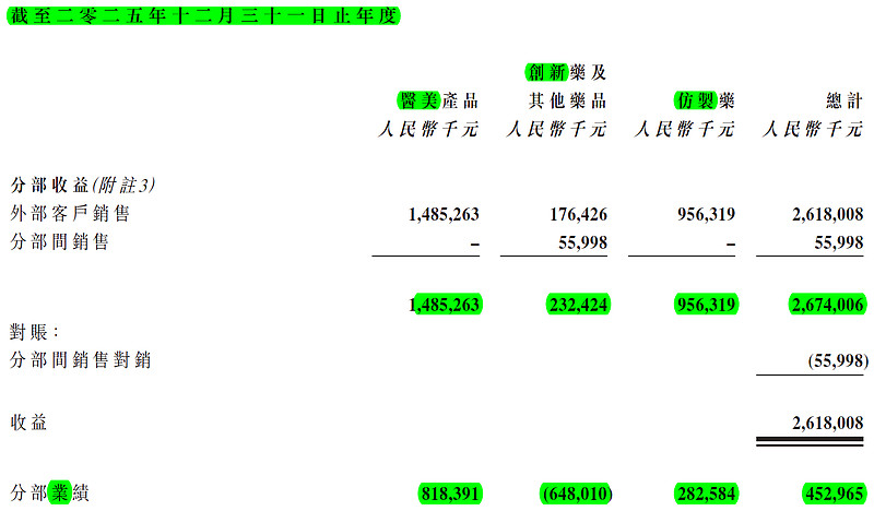 醫美業務的收益約為人民幣1,485.3百萬元(二零二四年:人民幣744.2百萬元),同比上升約99.6%(約人民幣741.1百萬元)。其中,核心大單品樂提葆®憑藉銷售渠道持續下沉與覆蓋拓,實現超8,000家醫療美容機構覆蓋,1,500家重點醫美機構覆蓋,推動收益穩健增長;新獲批產童顏針(回顏臻® 和斯弗妍®)、少女針(傾研®)上市後表現亮眼,含L-肌肽動能素凍妍®填補細分市場空白,為醫美業務收益貢獻重要增量動力;同時,公司依託全品類合規產品矩陣局,推行多品種組合行銷策略,大力推動包括樂葆+、魔力童顏等組合方案,進一步推動整體銷售規模快速提升,成為本集團營收增長的第一驅動力。