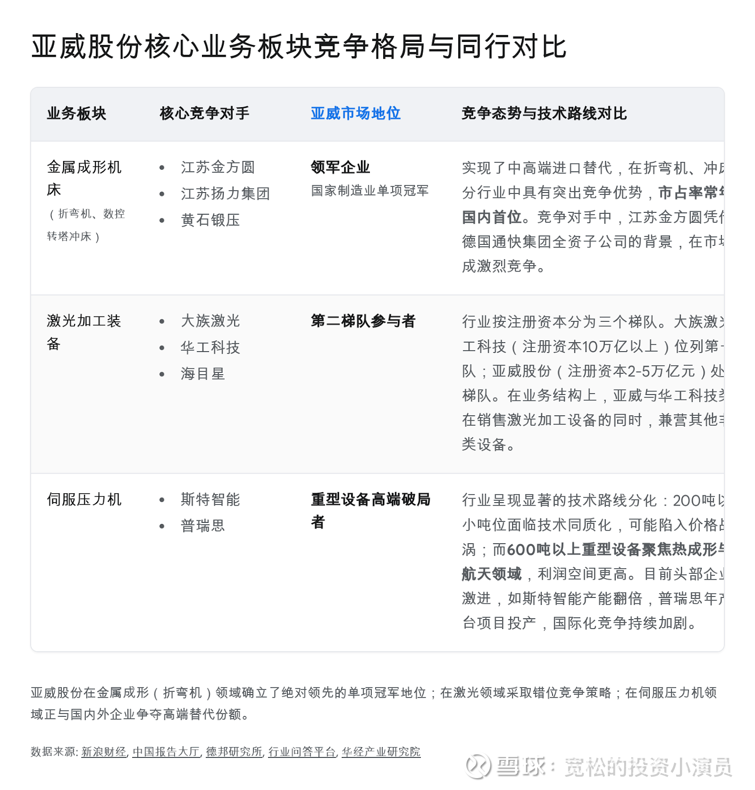 由于亚威的业务横跨多个工业母机细分领域,其核心对手需按业务板块进行精准拆解: