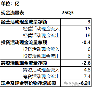 (2)进一步看,经营活动现金净流出3亿,前面分析了利润表,跟亏损对得上,基本就是多了研发费用那一块;投资活动基本持平,现在公司可能没有大规模对外投资的意愿和能力;多出来的就正好是筹资活动,也就是说前几年公司整体在不断借钱,这几年是一直在还钱。按照公司现在的现金存量,大概率不可持续,所以预计接下来借钱应该是需要重点关注的事情,不过结合我们资产负债表里长期借款很少、利润表里利息支出很少,公司举债的能力还是有的,倒不用太担心。小结:公司接下来将会提高融资!