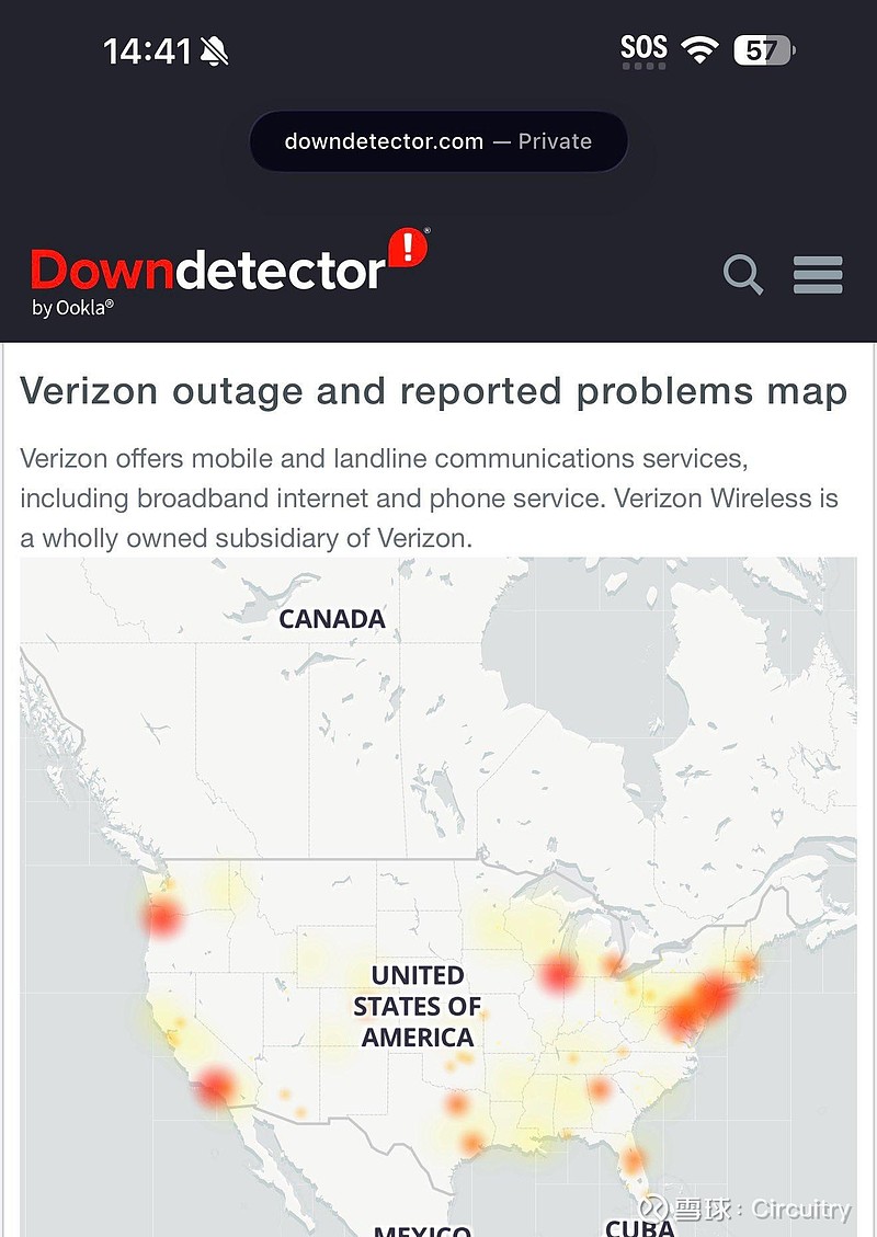 银河帝国不会先从皇宫倒塌,而是先从水、电、路、维护系统开始失效。 —阿西莫夫的基地系列美国不会从先从白宫倒塌,但基础设施也太烂了。$Verizon(VZ)$ 相当于$中国移动(SH600941)$ ,断网已经4个小时了。一查,全美好几个大城市都断了。
