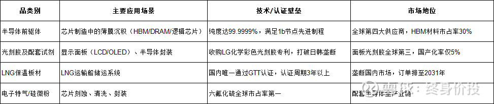 颠覆性替代风险低:前驱体认证周期长达3-5年,客户粘性强。