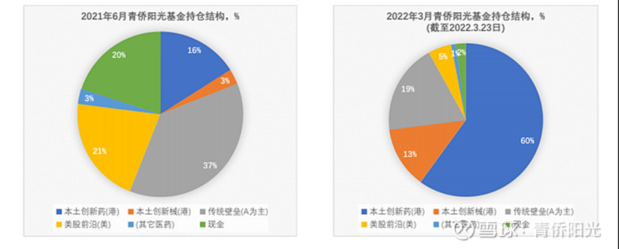 2022年3月的仓位情况,和2021年6月相比已经发生了巨大的变化: