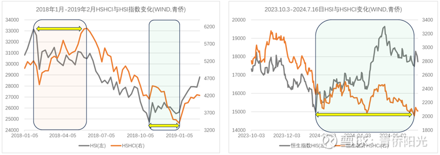 回到2024年,恒生指数在1月阶段新低后明显回升,但恒生医疗在2024年4月又创了阶段性新低,又多跌了3个月。我们并不知道2024年1月算不算是恒生指数的底了,也不确定2024年4月能不能成为恒生医疗指数的底。但假设是的话,相当于又一次印证了恒生医疗相比恒生指数在见顶见底上的“滞后特性”。