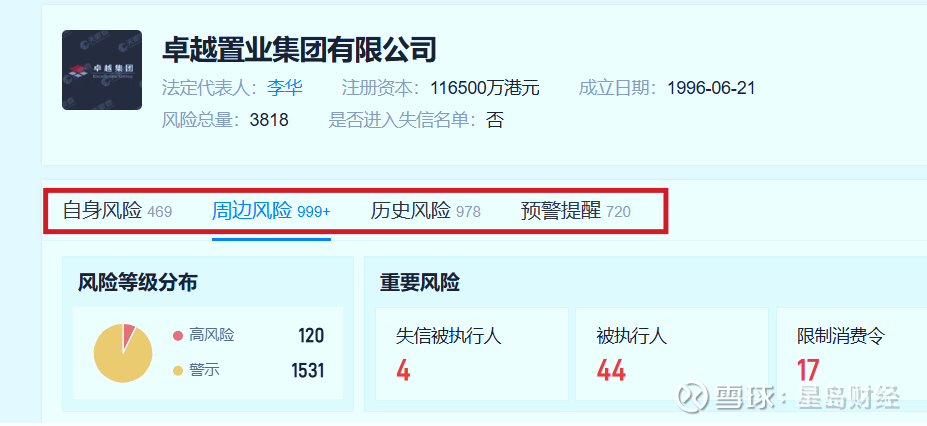 天眼查信息显示,目前卓越集团及其关联公司的司法风险提示已超千条,集团体系内数十家公司已被列为被执行人。