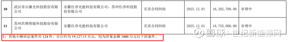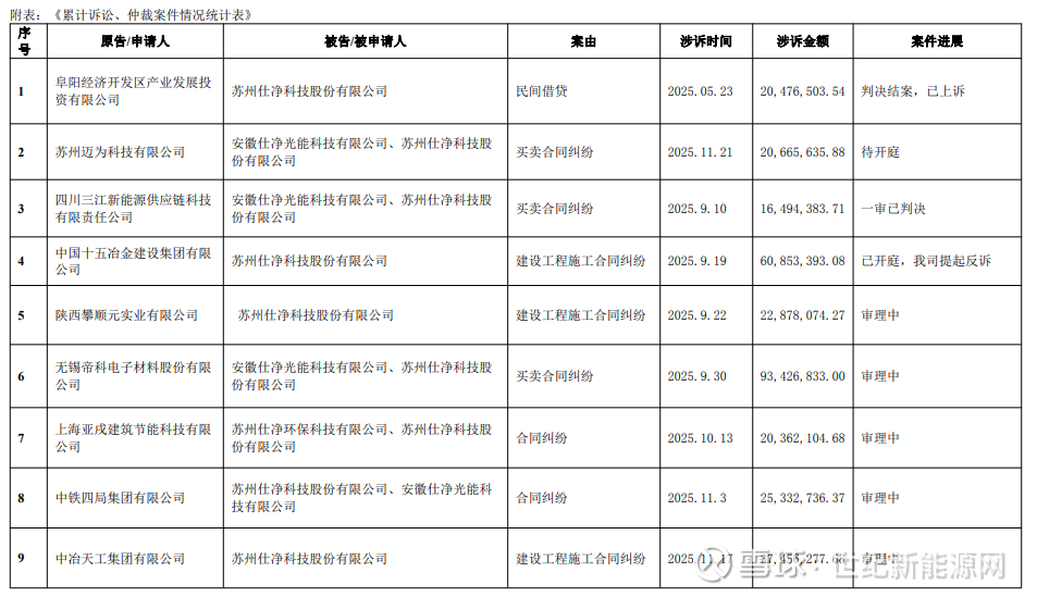 此外,中铁四局、苏州迈为科技等多家知名企业均对仕净科技及子公司提起诉讼,涉案金额均超2000万元。