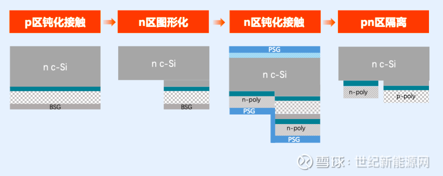1975年,普渡大学 R.J. Schwartz(斯瓦茨)团队通过一步法在同一钝化层加工P-Poly与N-Poly,实现了17%的电池转换效率,奠定了技术基础。