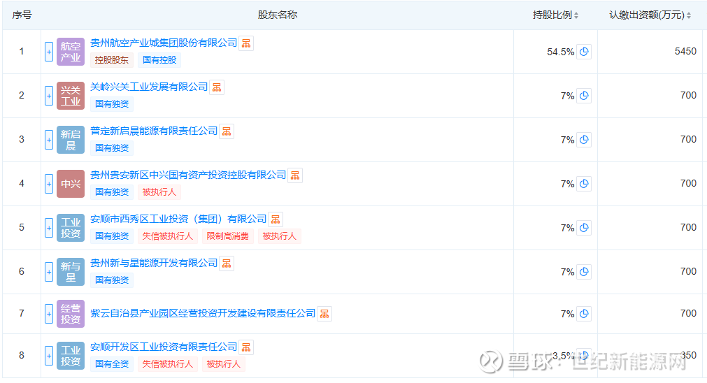 普定联鑫由安顺联鑫全资所有,安顺联鑫是贵航产业城持股54.5%的控股公司。天眼查显示,安顺联鑫8名股东中有3名是失信被执行人。更要命的是,贵航产业城已在今年6月将安顺联鑫股权质押给了贵州聚合发展投资有限责任公司,出质股权数额5450.0万元,也就是全部股权都被质押。