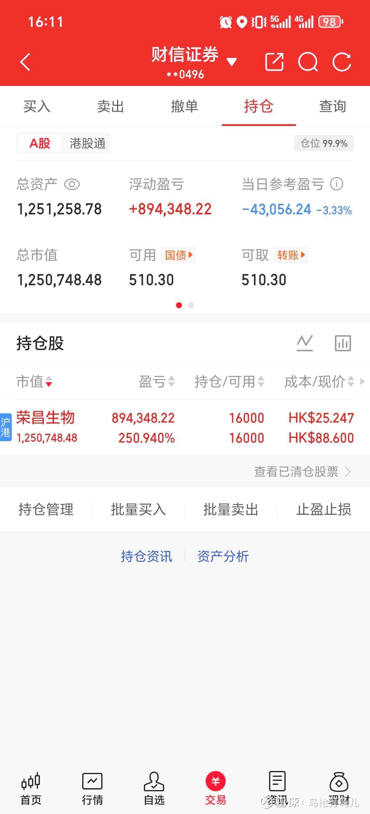 下午开盘阶段荣昌生物H的直线下杀,只能说控制不住情绪的人实在太多了,各自安好吧!