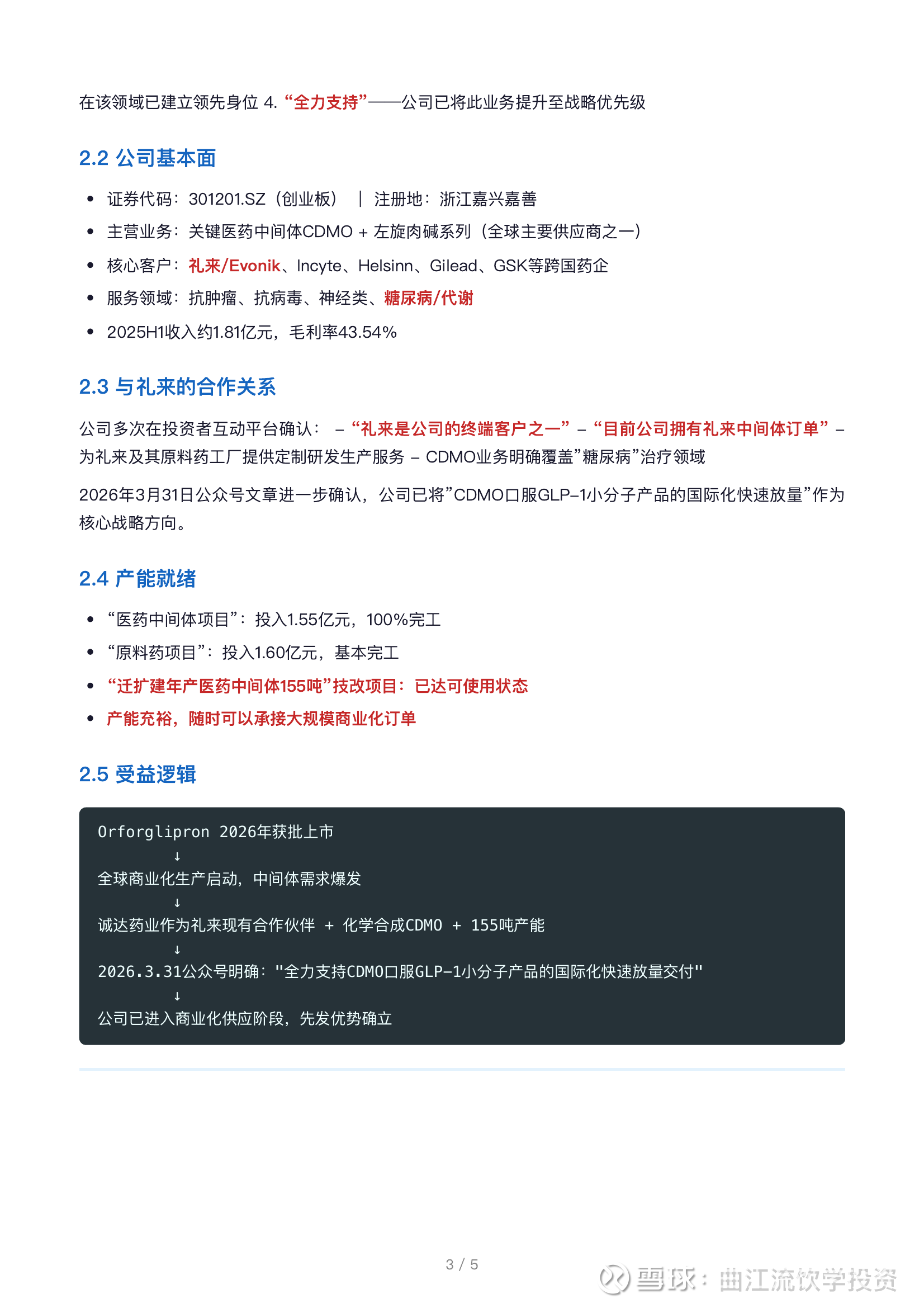 → 2026.3.31公众号明确:"全力支持CDMO口服GLP-1小分子产品的国际化快速放量交付"