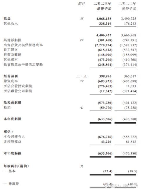 2023年,信德集团收益为约40.68亿港元,同比增长16.5%;本年度公司拥有人应占综合亏损为6.77亿港元(2022年:港币5.58亿元)。拥有人应占相关亏损(主要就投资物业产生的未变现公平价值变动作出调整后)将为2.09亿港元(2022年:港币1.02亿元)。每股基本亏损为22.4港仙(2022年:18.5港仙)。