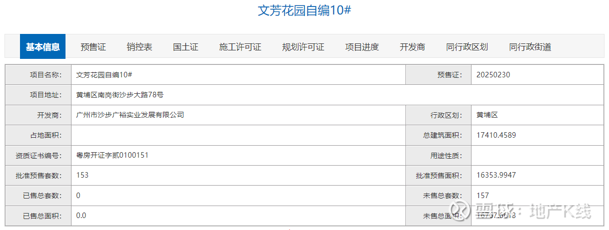 粤进深 严明会 据广州市住建局,近日,万科黄埔新城(备案名:文芳花园、文采花园)新领预售证,批准预售房源153套,预售总面积16353.9947㎡。