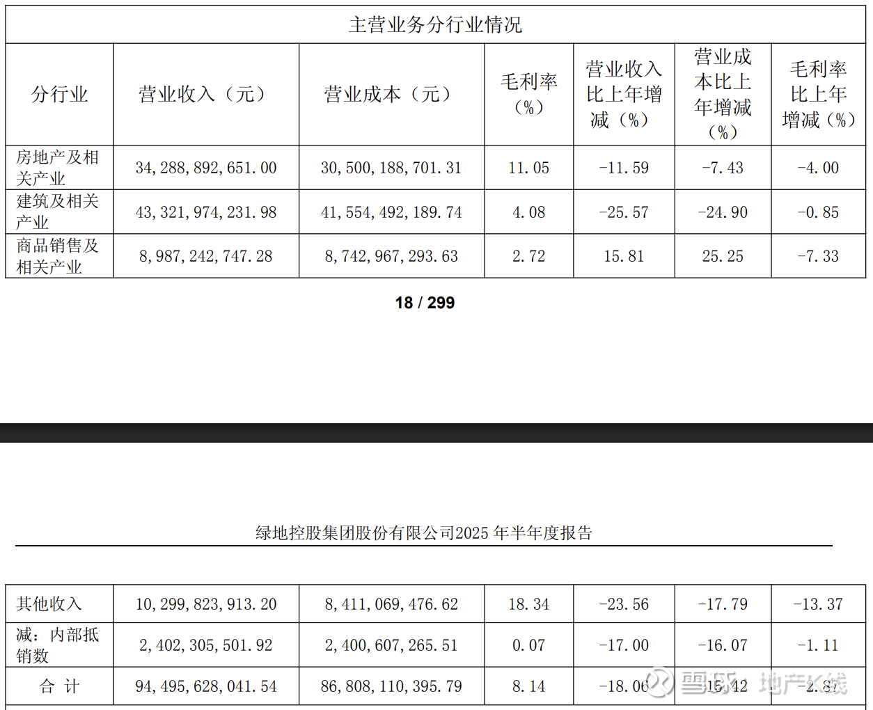 乐居财经 徐迪8月26日,绿地控股发布2025年半年度报告。