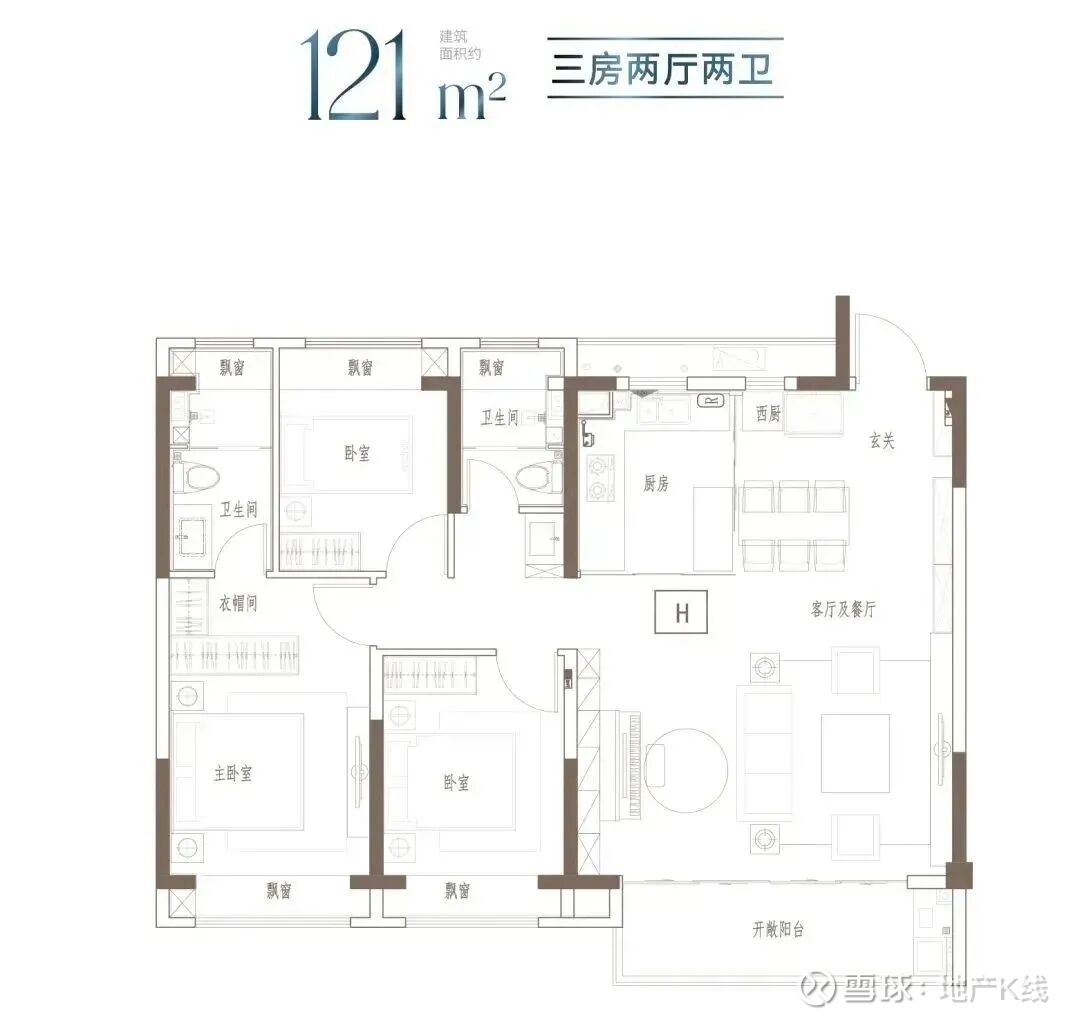 户型特点:3开间朝南,全屋阳光充足;L型厨房转角移门设计,最大化空间视野;四飘窗设计,通透空间享受;动静分区,亲密有度;套房式主卧,容纳私谧生活点滴;