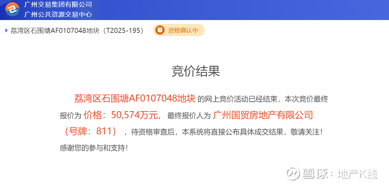 上一次还是在2023年5月底。当时,国贸摇中白云区嘉禾望岗东北侧AB2108014地块,成交价24.822亿元,溢价率15%,折合楼面价24649元/㎡。