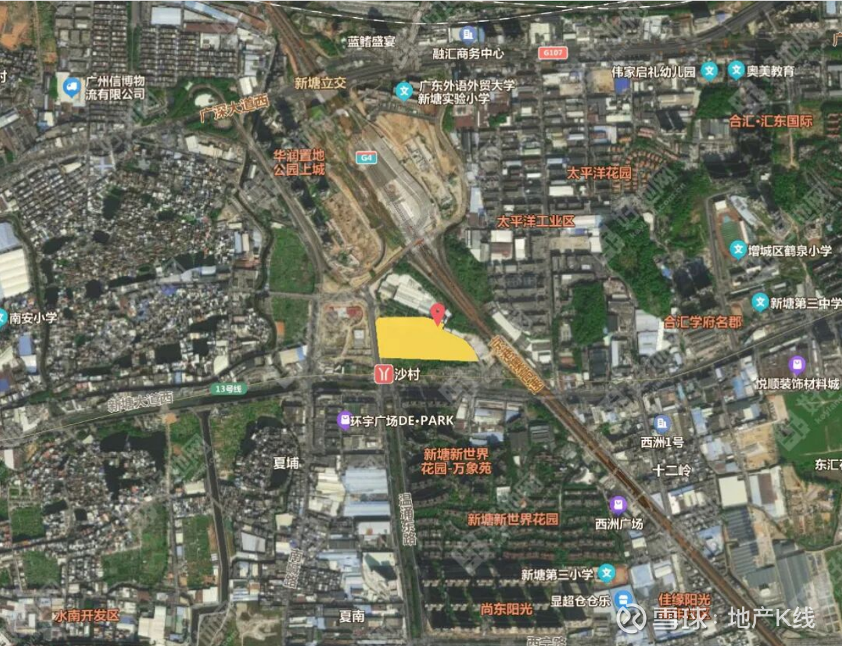地块位置不错,距离地铁13号线沙村站不足100米,妥妥的地铁上盖。周边有广东外语外贸大学附属新塘实验小学、鹤泉小学、南方医院等配套。