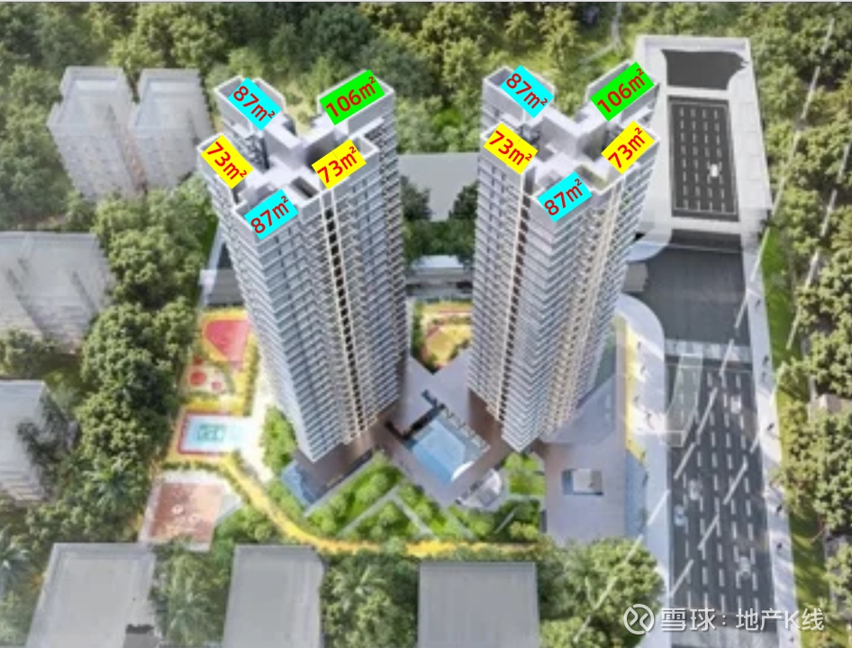 2)另外,两栋楼都是一层五户设计。项目在对视或隐私性方面可能受一定影响。比如中间的两个73㎡户型与北边的87、106㎡户型。就可能存在这方面问题。具体要看开发商如何设计避免。