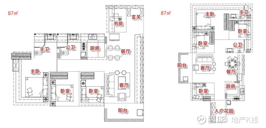 不足是,入户门进来的卧室较为拥挤;另外,其中一个户型的餐厅空间同样略显局促。