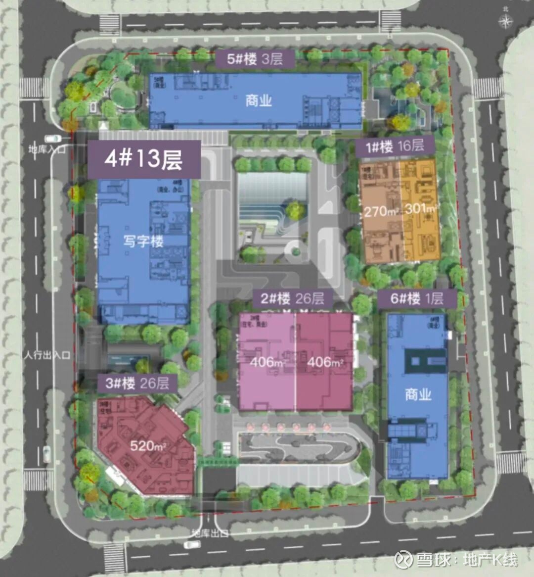 这栋楼5层及以下是商业,6层及以上是住宅,主力户型为406㎡,拟售均价为14.79万元/㎡,全小区最低。