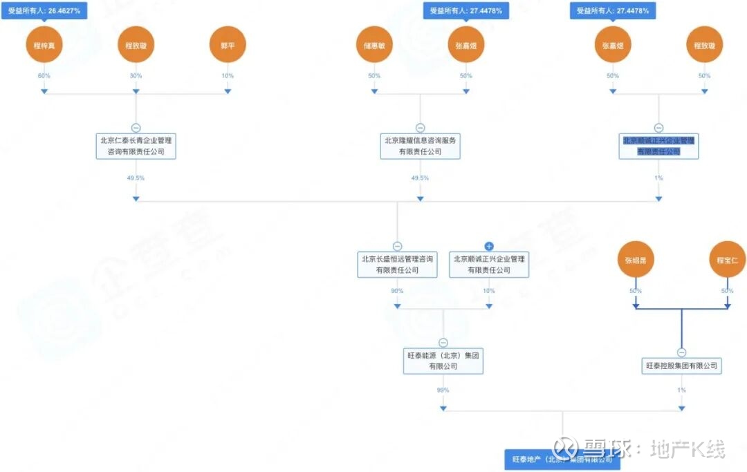 穿透可知,旺泰地产由旺泰能源(北京)集团和旺泰控股集团分别持股99%和1%。