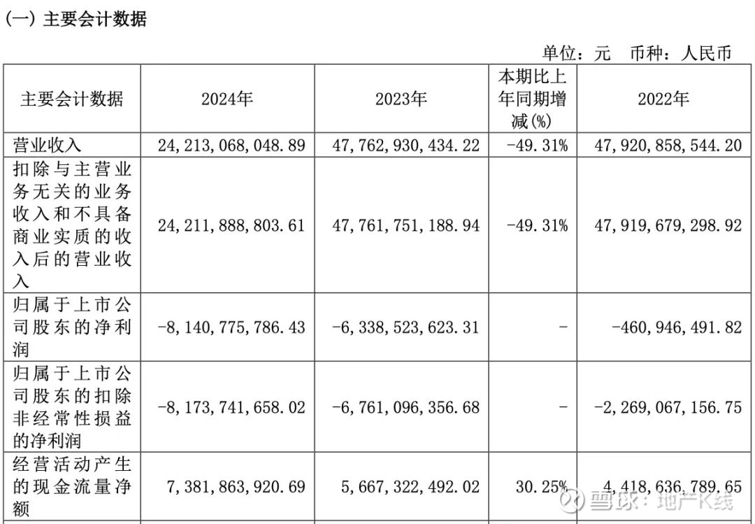 2024 年度,首开股份实现营业收入242.13亿元,同比下降 49.31%;归属于上市公司股东的净利润为-81.41亿元,同比去年-63.39亿元。