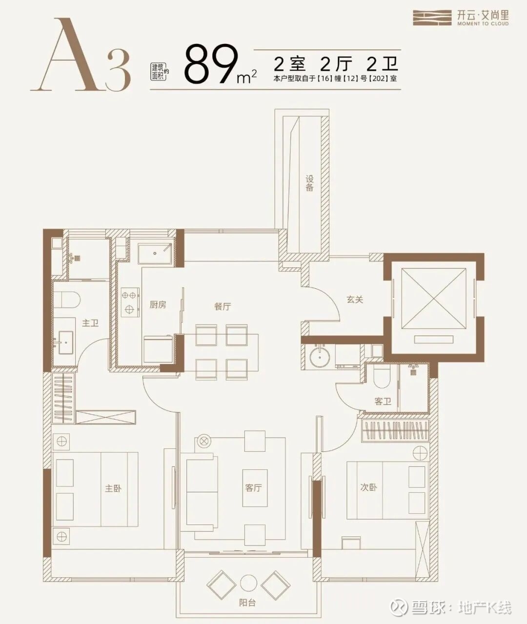 此番开云艾尚里主推的87-89㎡户型,清一色做的是两房两卫。在当下市场三房起步、功能至上的主流需求下,这样的配置显得有些“另类”。