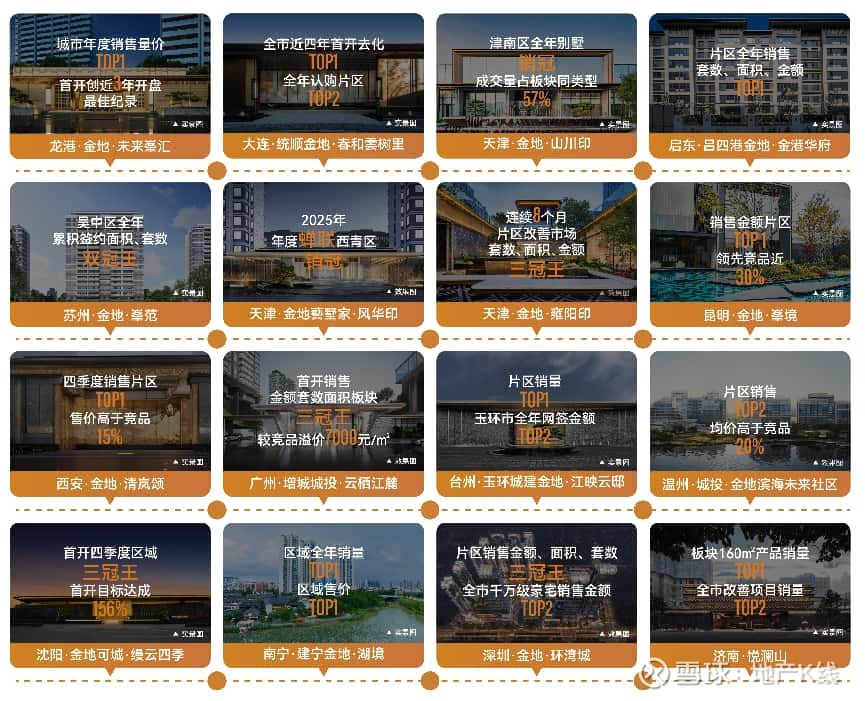 在营销方面,面对2025年市场竞争加剧、操盘难度与日俱增,金地管理代建的项目逆势热销,36个项目跑赢竞品。如龙港·金地·未来峯汇项目,首开创下龙港近3年开盘最佳纪录,城市年度销售量价TOP1;如大连·统顺金地·春和雲树里项目,位列全市近四年首开去化TOP1,全年认购业绩稳居片区TOP2;如天津·金地·山川印项目,位列津南区全年别墅销冠,成交量占板块同类型57%;如启东·吕四港金地·金港华府项目,稳居片区全年销售套数、面积、金额“三冠王”。