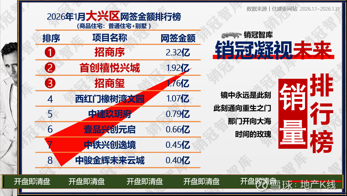 2026年1月,招商序网签金额为2.32亿元,拿下大兴区商品住宅项目网签金额排名第一。