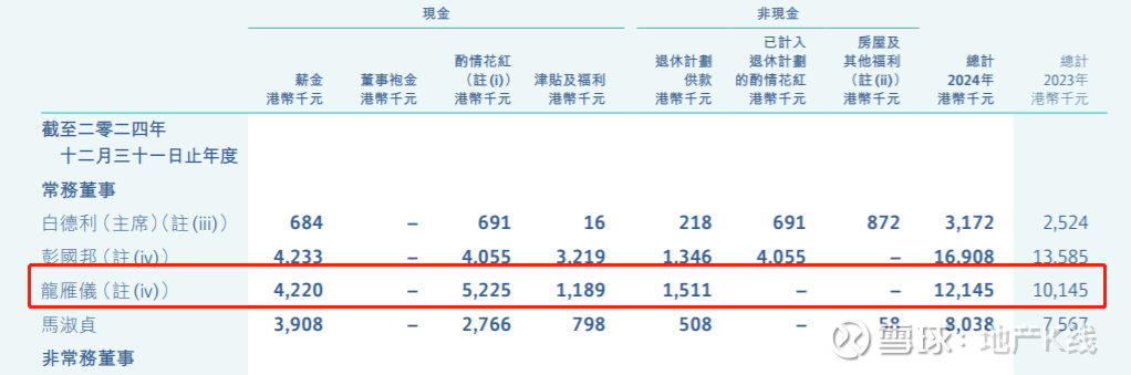 2024年,龙雁仪薪酬总计为1214.5万港元。