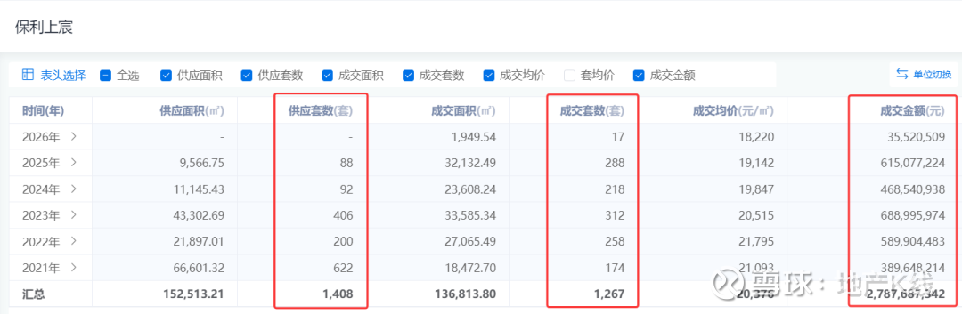 据统计,2021-2024年,保利上宸累计成交金额21.37亿元,距当年的买地价还有1亿多的差距。