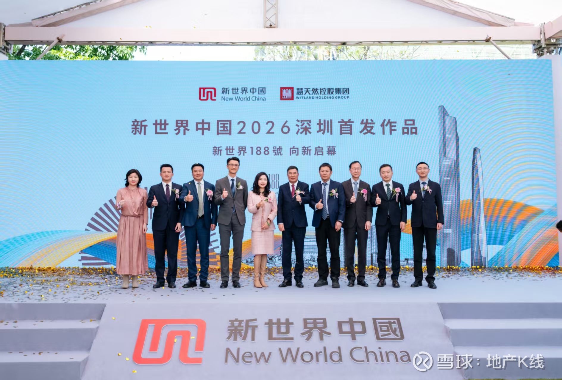 图注:新世界发展执行董事兼行政总裁黄少媚(左五)、慧天然集团董事长容少群(右五),及新世界中国、慧天然集团代表为新世界188號启幕