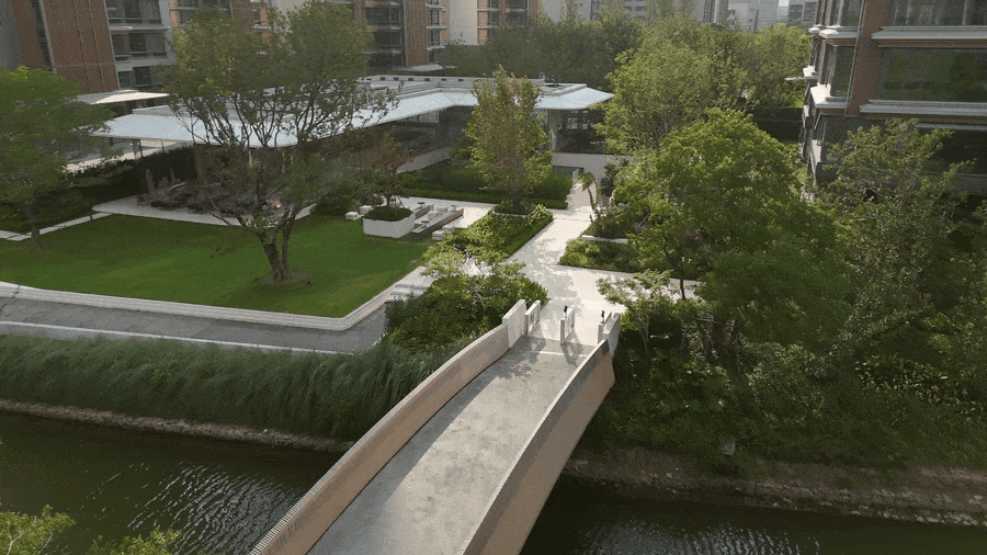 环“境”,小区临水区域没有设置围墙,而是借助河道这一天然屏障,打造出自然无界的景观效果。打造六重景观场景,让业主从踏入小区的那一刻起,就仿佛走进了现代桃花源。