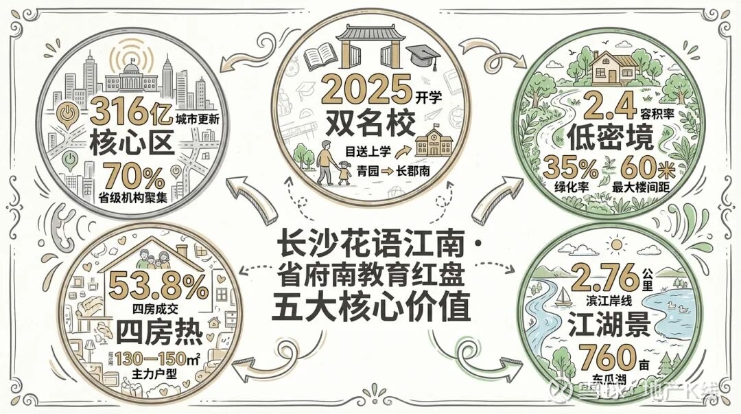 中国铁建花语江南是一款以教育确定性为核心驱动力、空间效率为关键卖点的刚改复合型项目。其最大价值在于青园与长郡双名校的闭环配置,叠加高得房率与央企开发背景,对注重子女教育、追求实用居住空间的家庭具有较强吸引力。