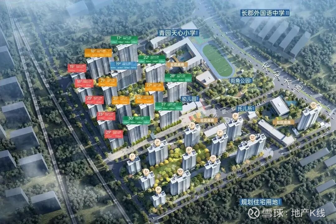 学位房保障:明确配套长郡外国语实验中学南校区和青园实验小学,凭购房合同即可入读,同板块少见。