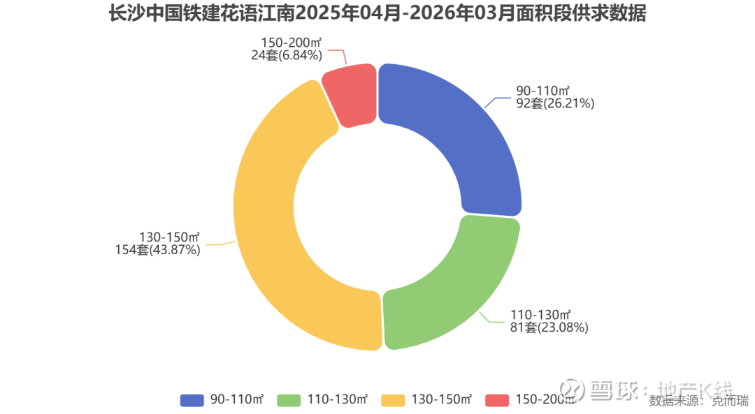 数据显示,花语江南主力成交集中在建面130至150平方米面积段,占比达43.9%,其次是建面90至110平方米和110至130平方米,分别占26.2%和23.1%。这反映出市场对项目改善型产品的高度认可,尤其是建面130至150平方米四房成为最受欢迎的选择。