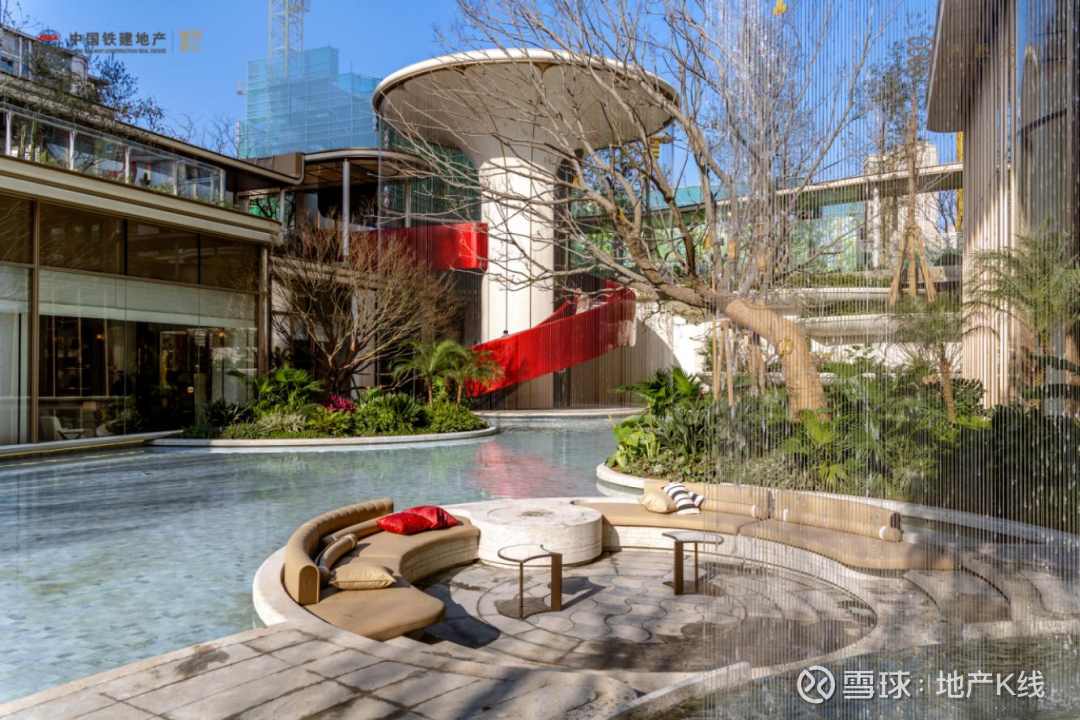 约3000平方米双会所与庭院无界交融,恒温泳池、双层书吧、健身空间一应俱全,约12米高的艺术水幕旋梯拾级而上,将立体居住体验拉满。