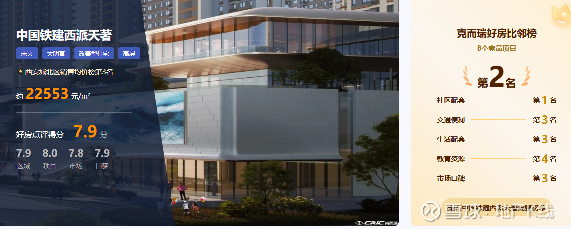 中国铁建西派天著以7.9分的综合得分,在同区域8个竞品项目中高居第二,成为城北改善置业的热门之选。