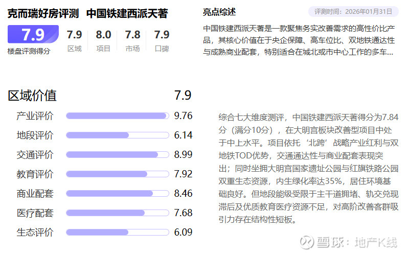 如果你正在寻找一个既能满足当下生活品质需求,又具备长期居住价值的主城改善项目,那么克而瑞7.9分认证的中国铁建西派天著,值得纳入重点考量范围。