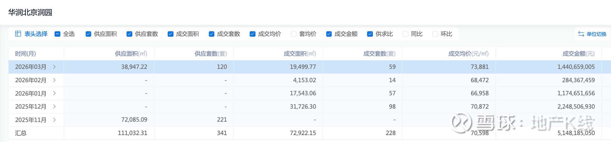 1-3月份,北京润园累计完成网签130套,成交面积4.12万㎡。