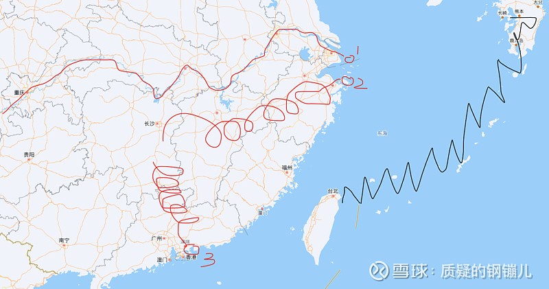 不变的地理位置,变化的综合实力对三个港口的影响。红色圈,1洋山,2舟山,3招商。上海港背靠长江、面向世界成就了上海的繁华。粤港澳,以前交通不便,距离是政治中心较远,外部入侵登陆的绝佳位置。综合国力增强,陆地交通发达,在未来很长一段时间会继续成就舟山、招商两个港口。