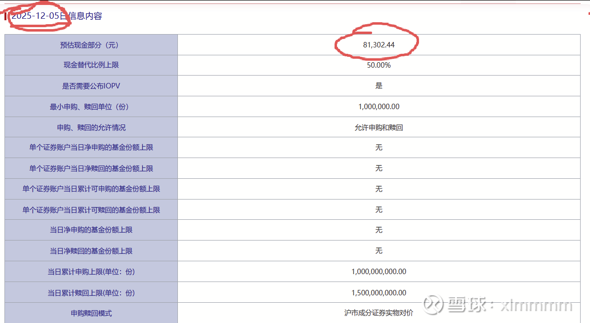基金公司卖掉这些成分股之后,应该还没有买入调入名单的股票(我个人猜测)。因为ETF是由申赎机制的,投资者进行申赎套利时,这些降低的股份比例就只能采用现金替代。大家到官网继续查询申赎清单,您就会发现,11月28日现金替代是6582元,而12月5日是81302元。也就是说,这些调出股份已经被基金公司卖掉一些了,你要是想赎回得到一蓝子股票,那只好用现金补给你了。有了这个数,我们就可以算算上周红利低波ETF到底卖了多少了。