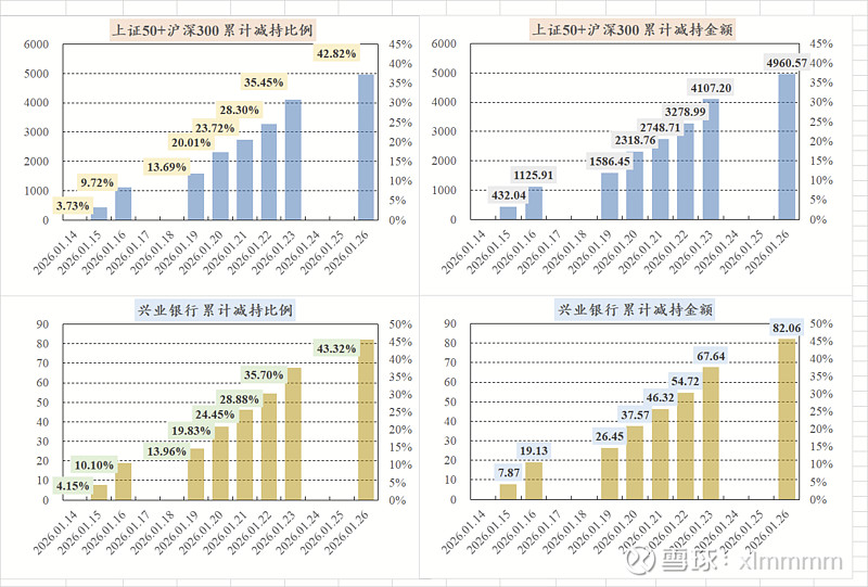 $兴业银行(SH601166)$ 哎,本来都关了不看了,可是好多人催我算下汇金卖了多少,好吧随便水个贴。根据当日成交量推算,今天汇金又疯狂大甩卖了850亿的上证50ETF和沪深300ETF,相当于卖出兴业银行15亿。目前已经卖掉43%,还剩下57%。慢慢熬吧,我忙其他的去了,各位评论就不回复和点赞了。一天水了两贴,感觉浪费了公共资源,叨扰各位了。祝大家发财!