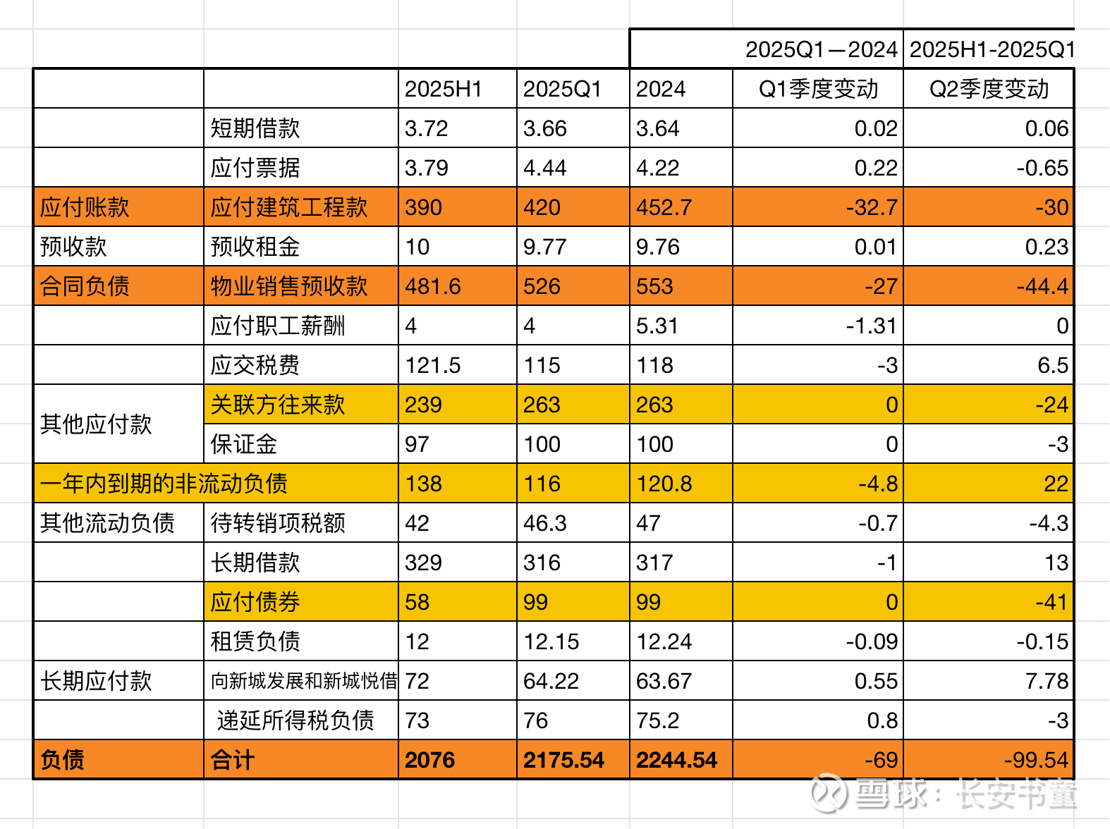 2.存货864亿(其中开发成品即现房360亿),固定资产45,现金和理财92.15,合计1001亿,与应付员工工资16、应付款(工程进度款+质保金等)394、合同负债491,合计901,基本相抵。