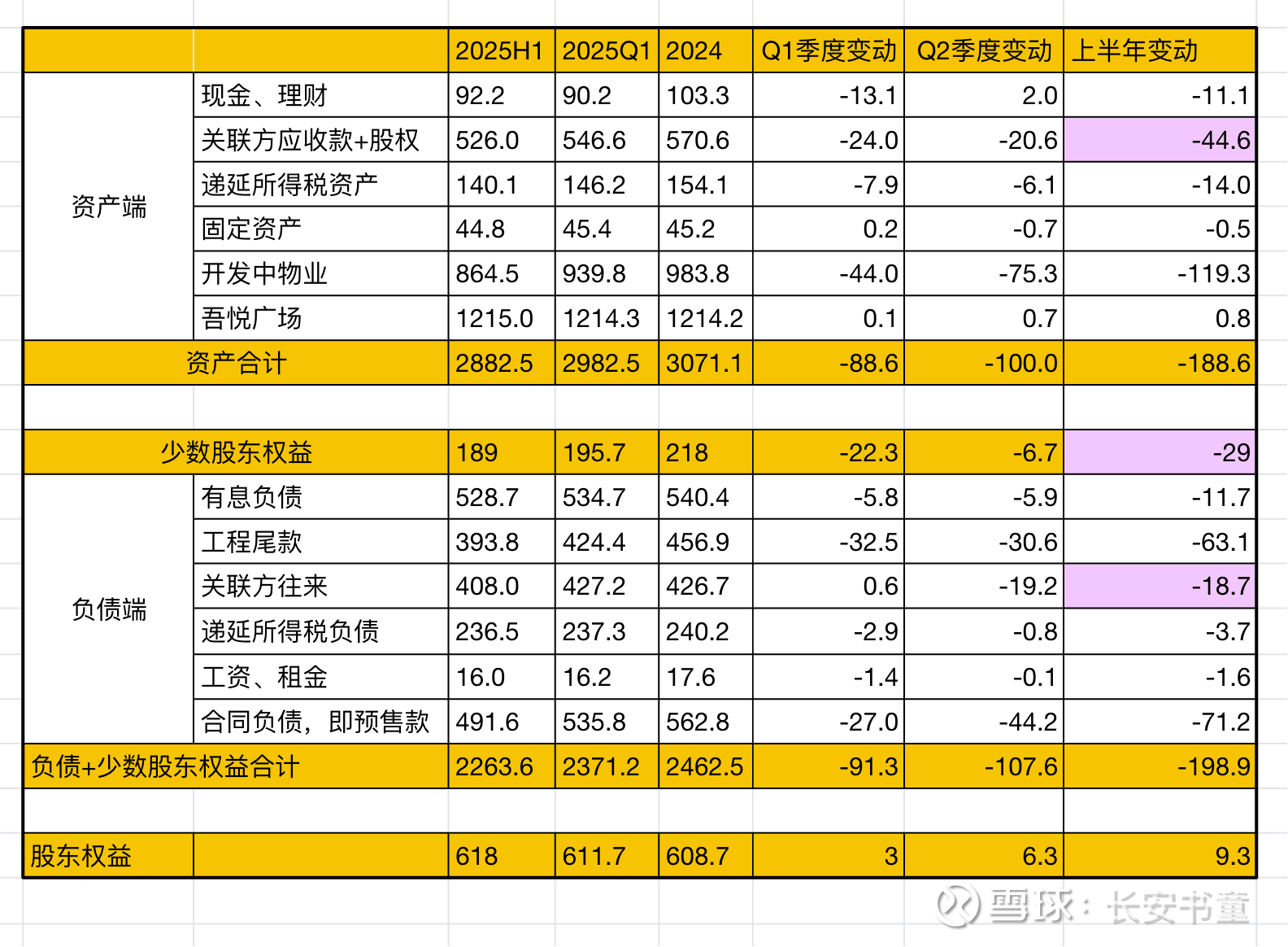 我最满意的一个点,紫色部分:关联方即各种合联营公司的往来款,资产端和负债端以及少数股东股东权益都在大幅减少。 在地产公司一直让人诟病的表外隐藏负债和亏损问题上,新城让人放心。