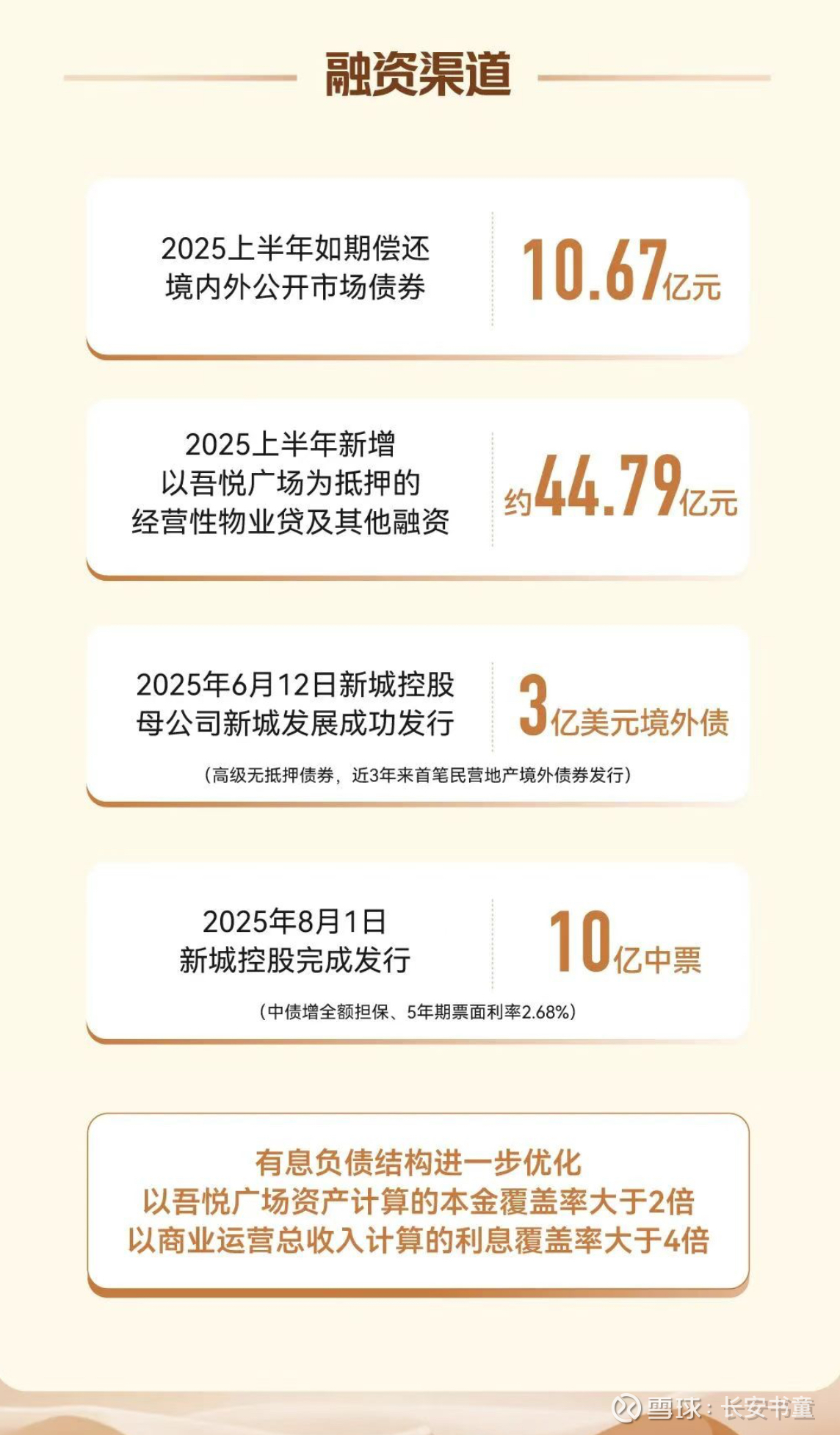 而新城的价值兑现,只一个前提条件,那就是住开业务的清零需要时间,期间的融资必须顺利。所以我们重点来看2025上半年融资上的进展: