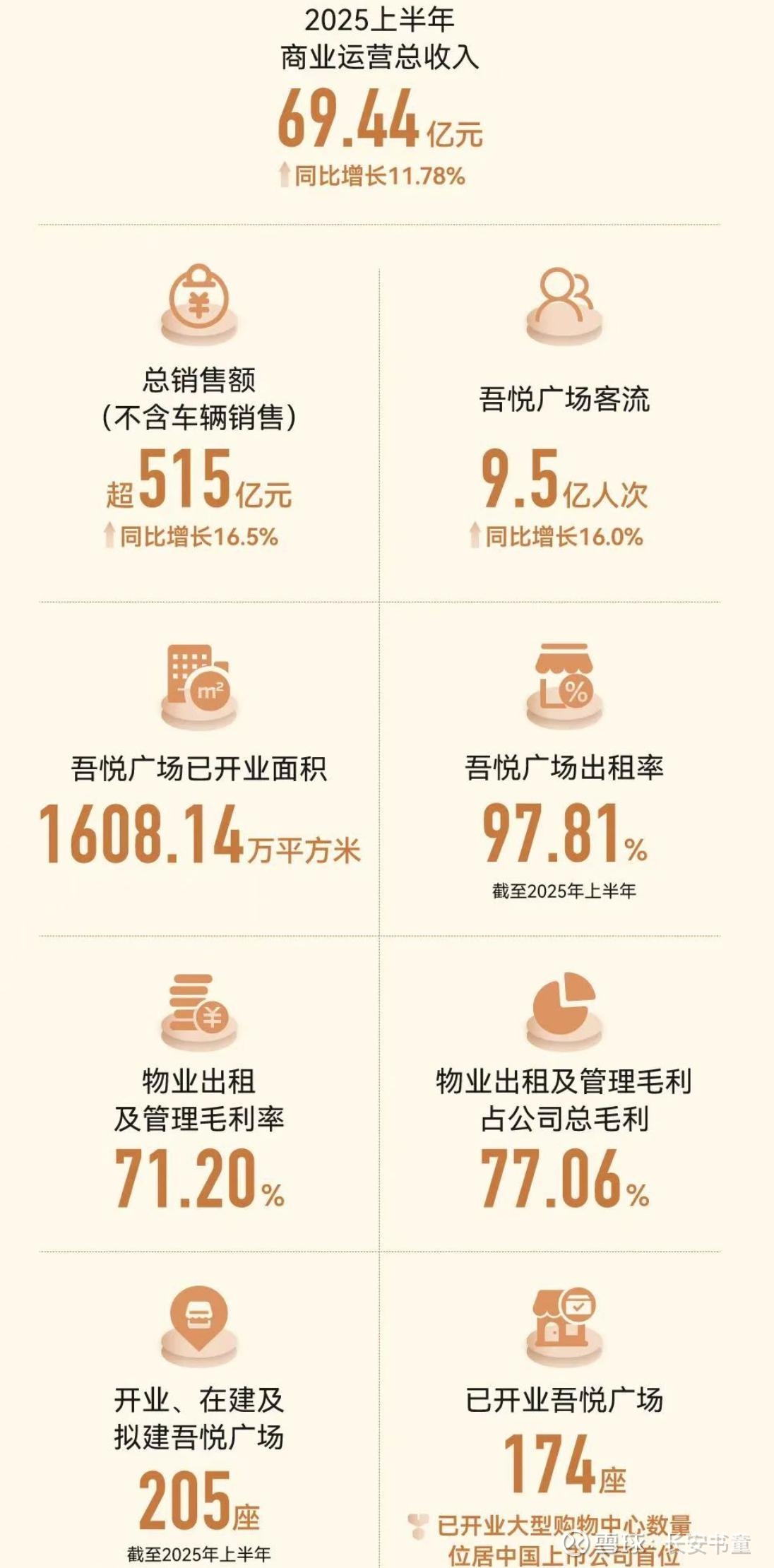 我们会注意到,吾悦的租金上涨是良性的。客流量增长16%,推动商场总销售额增长16.5%,推动吾悦租金同比上涨11.78%到70亿元,年底140亿。