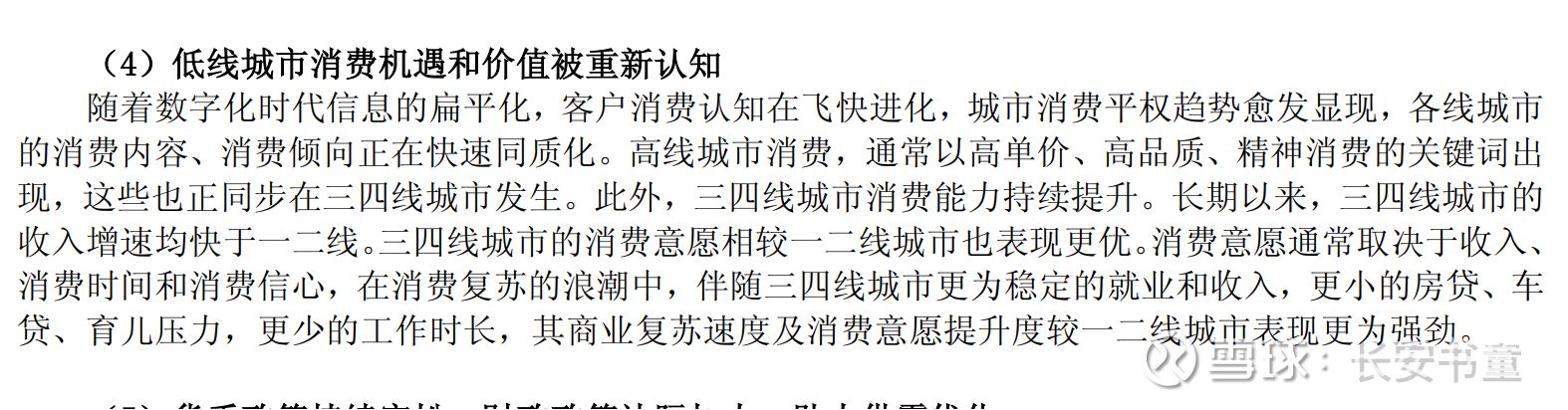 随着数字化时代信息的扁平化,客户消费认知在飞快进化,城市消费平权趋势愈发显现,各线城市的消费内容、消费倾向正在快速同质化。高线城市消费,通常以高单价、高品质、精神消费的关键词出现,这些也正同步在三四线城市发生。此外,三四线城市消费能力持续提升。长期以来,三四线城市的收入增速均快于一二线。三四线城市的消费意愿相较一二线城市也表现更优。消费意愿通常取决于收入、消费时间和消费信心,在消费复苏的浪潮中,伴随三四线城市更为稳定的就业和收入,更小的房贷、车贷、育儿压力,更少的工作时长,其商业复苏速度及消费意愿提升度较一二线城市表现更为强劲。
